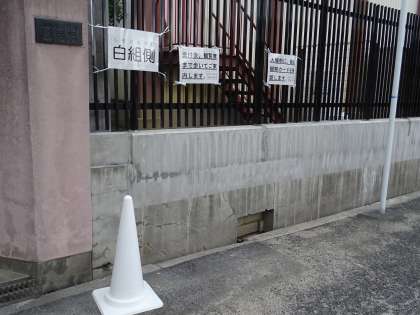 ・白組側(新プール側)と赤組側(いきいき側)の席へ、それぞれ分かれてのご案内となります。西門(入口)では、どちらかの列に間隔をあけてお並びください。
