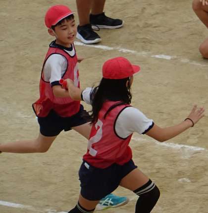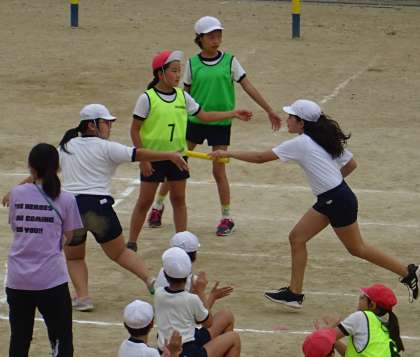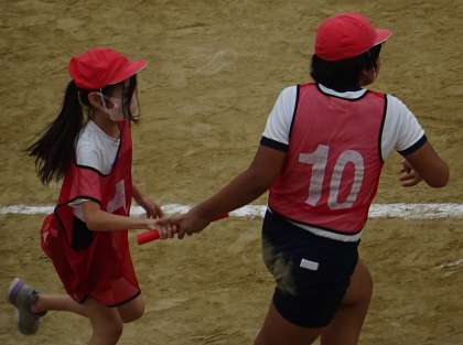 5年生が、リレーの練習をしている様子です。