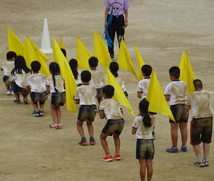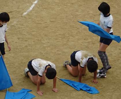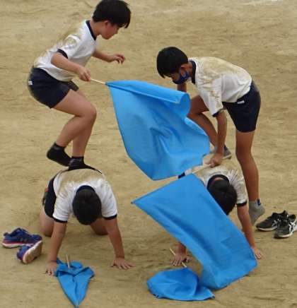 5・6年生が、団体演技の練習をしている様子です。