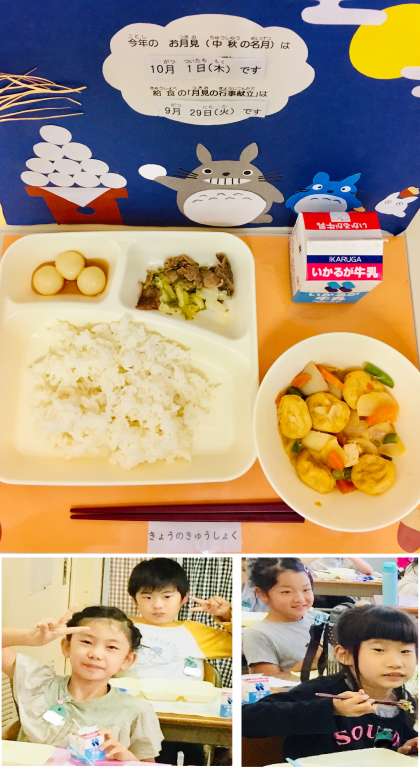 3年生の教室では、お月見の話や、お団子のクイズをしました。