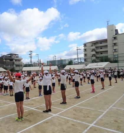 競技や演技の前に、しっかり体を動かしておきましょう。