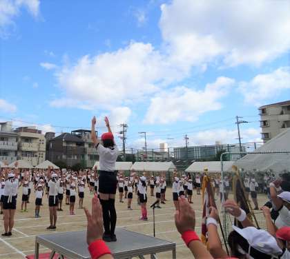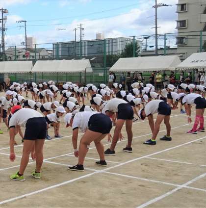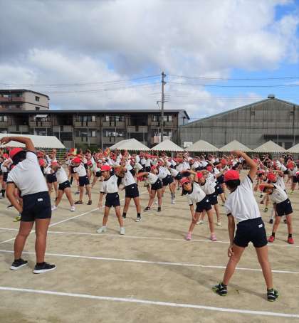 ラジオ体操第一の曲に合わせて、のびのびと体を動かしましょう。