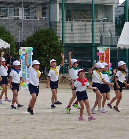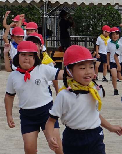 1・2年生による団体演技『レッツ、ダンス!!』です。