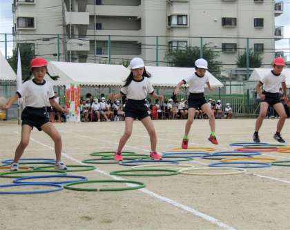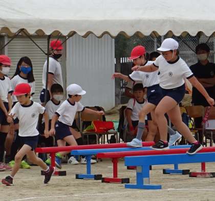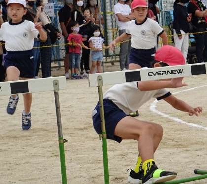 平均台は、途中で落ちてしまうと戻って最初からです。