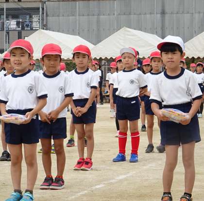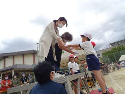 1年生にはなわとびが、2〜6年生にはノートが、それぞれ贈られました。