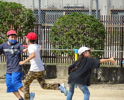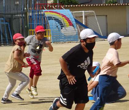 4年生が、来年の運動会に向けてリレーの練習をしていました。