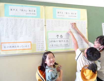 9月に実施した「漢字王(ひらがな王)」の結果(満点者一覧)が掲示されました。