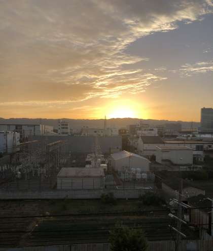 生駒山から昇る朝日がとてもまぶしい☀