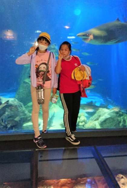 ギャー‼ う、うしろにサメが… 余裕のポーズですけど、何か。