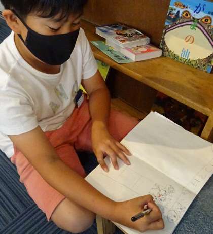 4コマ漫画を描いている子がいました。