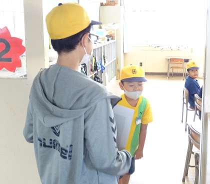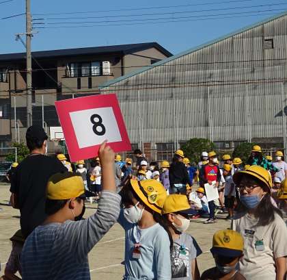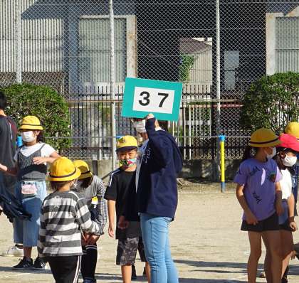 班長が1年生を教室まで迎えに行き、運動場に集合します。