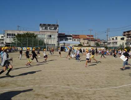 たてわり班は全部で48班あるので、運動場に引かれた線は24本。