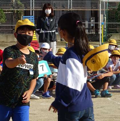 そう、たてわり班がじゃんけん対決をするための線だったのです。