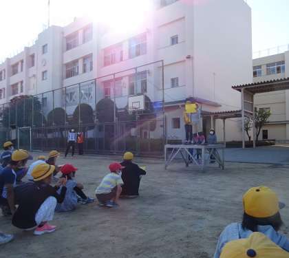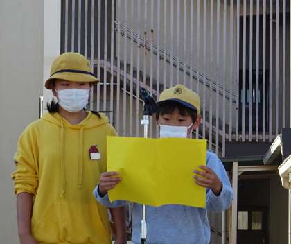 児童集会(たてわり班活動)の後、6年生から全校児童に向けてのお知らせがありました。