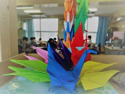 加美東小学校の皆で平和への願いを込めて、千羽鶴を折って届けたいと考えていますので協力してください。