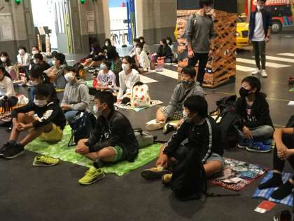 Lessonの後はLunch Time コロナ感染予防のため、前を向いて食べよう〜