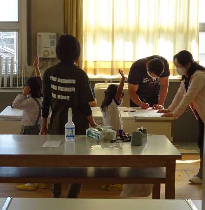 受付を済ませ、保護者の方と一緒に健診会場となっている各教室を回りました。