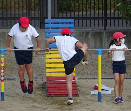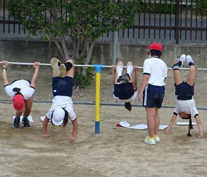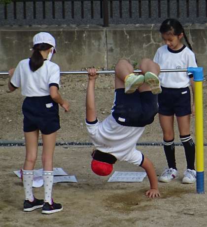 グループで練習し、技ができるようになったら先生に見てもらって、カードに合格のサインをもらいます。