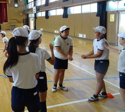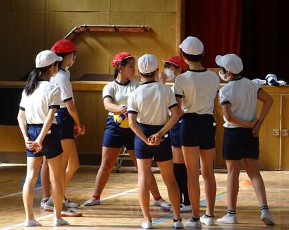 試合が終了すると、審判・得点係が、それぞれのチームにアドバイスをしていました。
