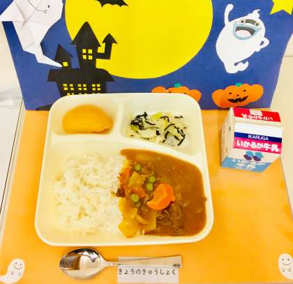 調理員さんが、ハロウィンに合わせて「スペシャルラッキーにんじん」を作ってくれました!