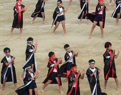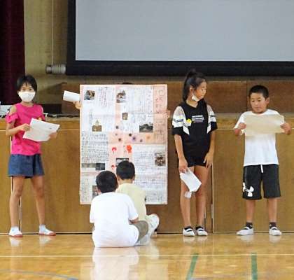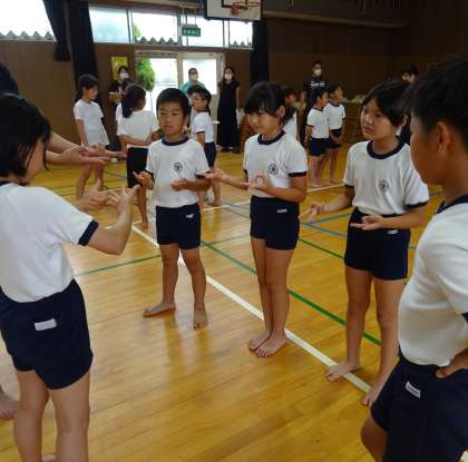 自分たちで考えた「龍踊り」を3年生に教え、一緒に運動会で披露しました。