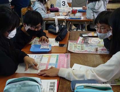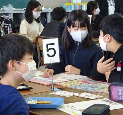 グループでショッピングモールの完成を目指すというオリジナルのボードゲームを活用しながら、広く社会の出来事に関心を持ち、社会と経済の関わりやしくみを知るという学習活動です。