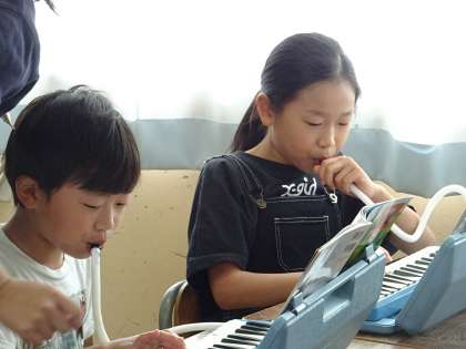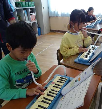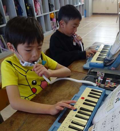 鍵盤ハーモニカを練習している様子です。