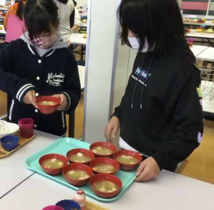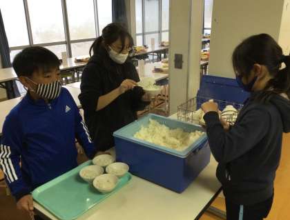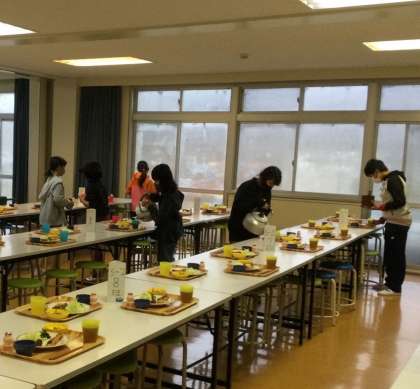 食事係は、みんなよりも早く食堂に来て、全員分のごはんやみそ汁、お茶を入れて配ります。