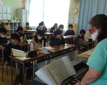 6年生は、12月の平和集会で発表する歌の練習を始めました。
