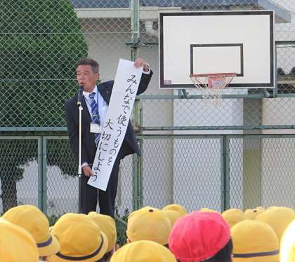 朝会で、校長先生から「みんなで使うものを大切にしよう」という話がありました。