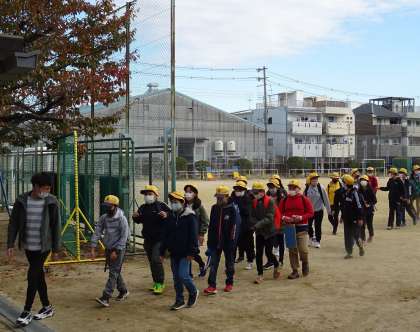 冷たい風が少し吹き抜ける中、6年生は社会見学でピース大阪に行きました。