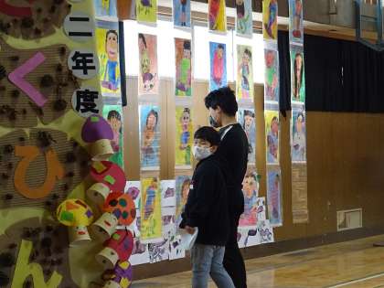 子どもたちが作品を鑑賞している様子です。