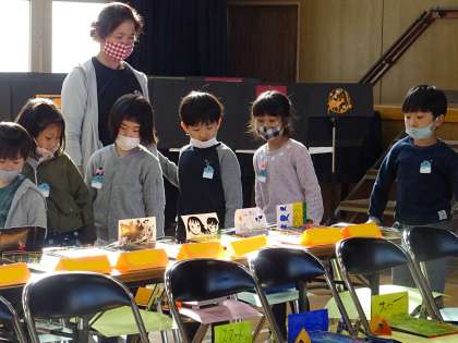 子どもたちが作品を鑑賞している様子です。