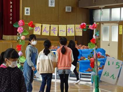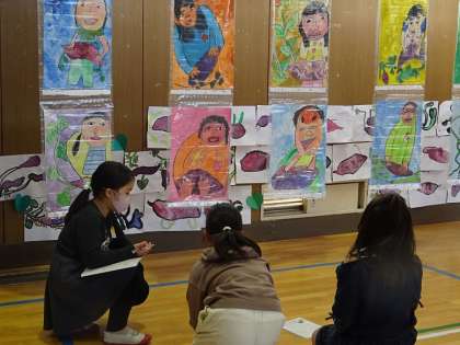 子どもたちが作品を鑑賞している様子です。