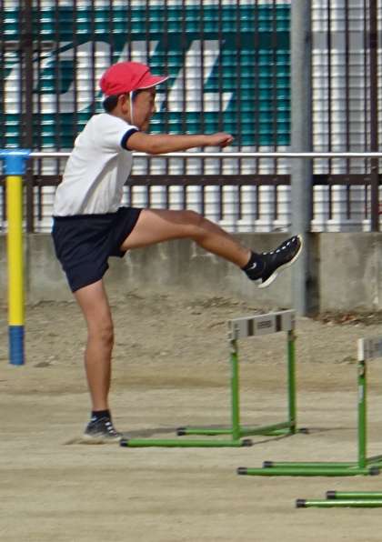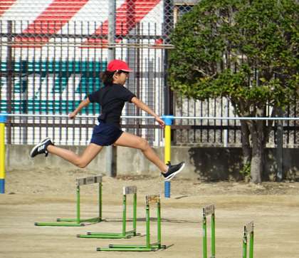 4年生が「ハードル走」の練習をしている様子です。