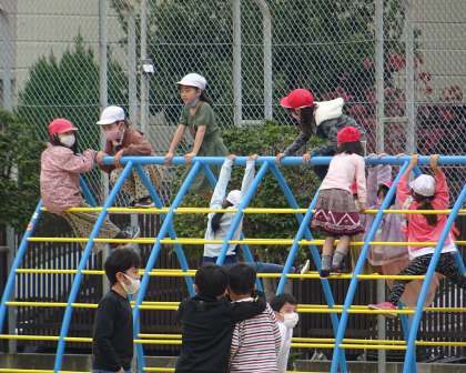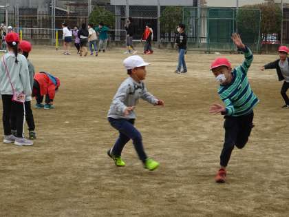 運動場で元気よく遊ぶ子どもたちの様子です。