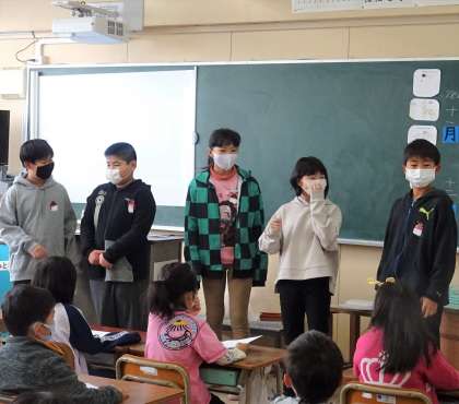 6年生が各クラスで実施した英語集会の様子です。
