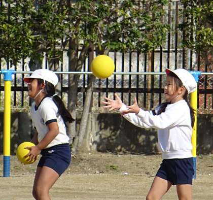 2年生が体育の授業でボールを使った運動をしている様子です。