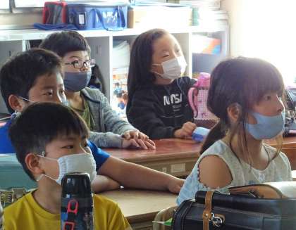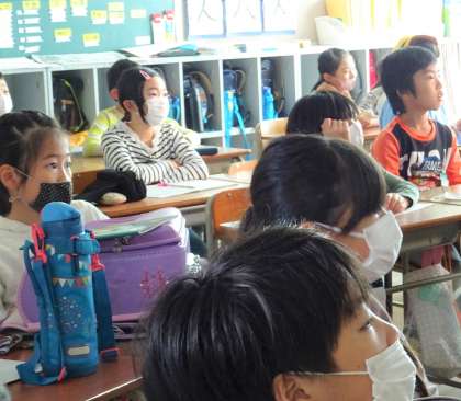 3年生と4年生の子どもたちも、自分たちが出演しているビデオを見ました。