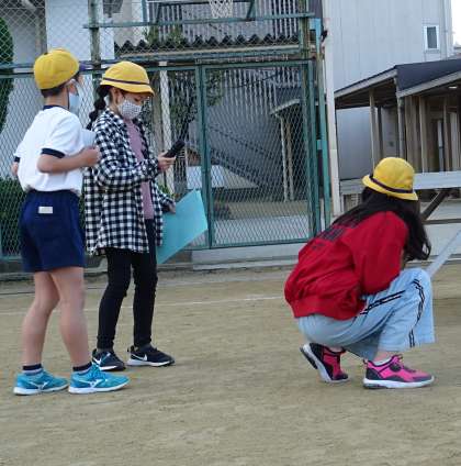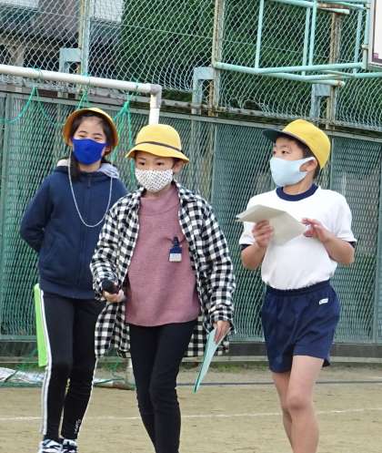 月曜日の児童朝会では、児童会による寸劇が行われ、校内を走ると危険がいっぱいであることを全校のみんなに訴えかけました。