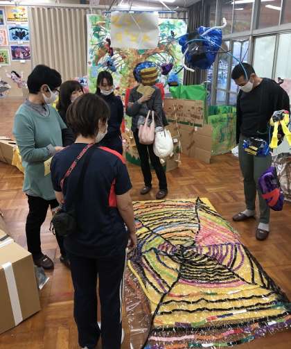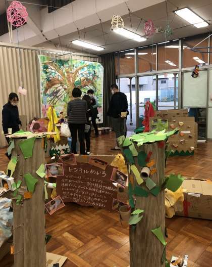 加美北幼稚園の作品展を見学させていただいている様子です。