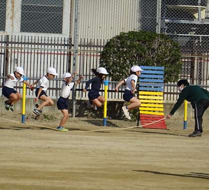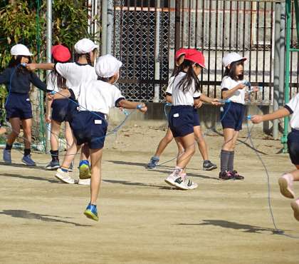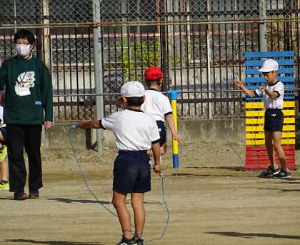 自分でなわとびカードの課題に挑戦したり、みんなで楽しく大縄を跳んだりして、楽しく活動していました。