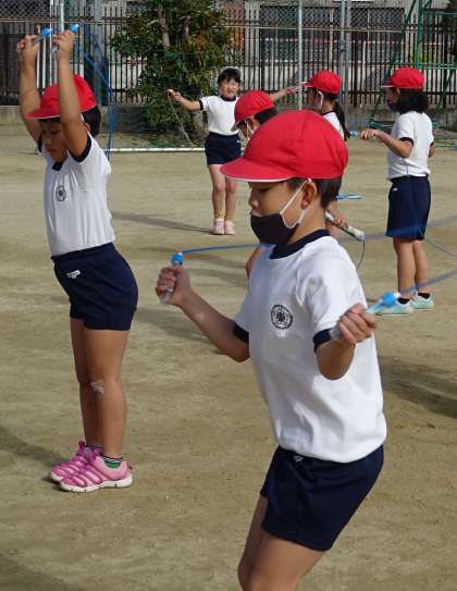 1年生が、なわとびに挑戦している様子です。