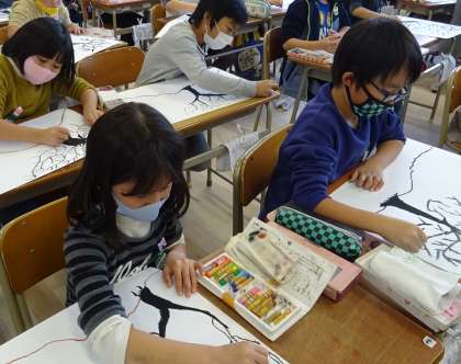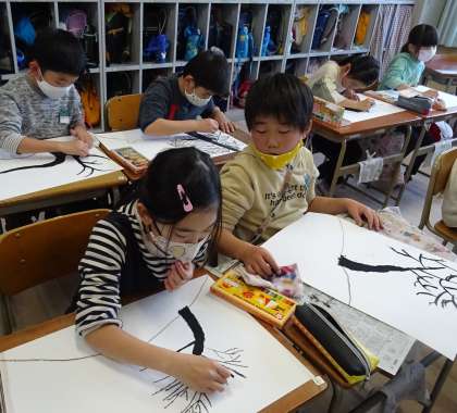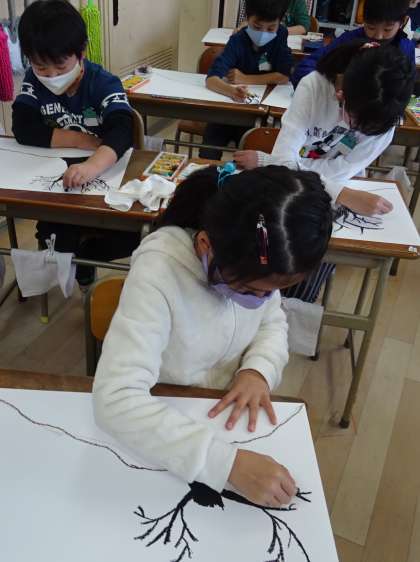 「モチモチの木」の絵を描いている様子です。