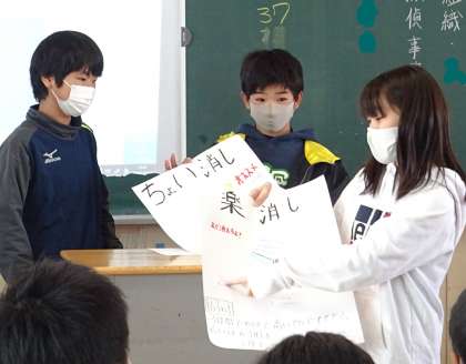 6年生は、身近な不便を解消するアイデアグッズをグループで開発し、商品の性能や使い道とその魅力をいかに伝えるかを競う、総合的な学習活動をしました。