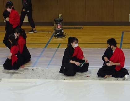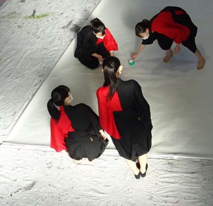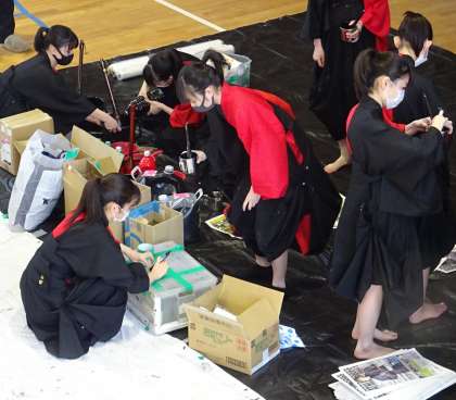 準備を進めながら、パフォーマンスの位置や動きを確認しています。
