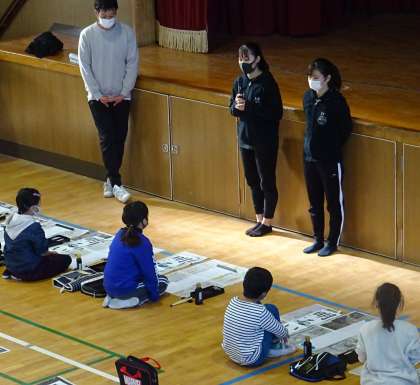 高校生のお姉さんお兄さんを前に、3年生の子どもたちは少し緊張しているようです。