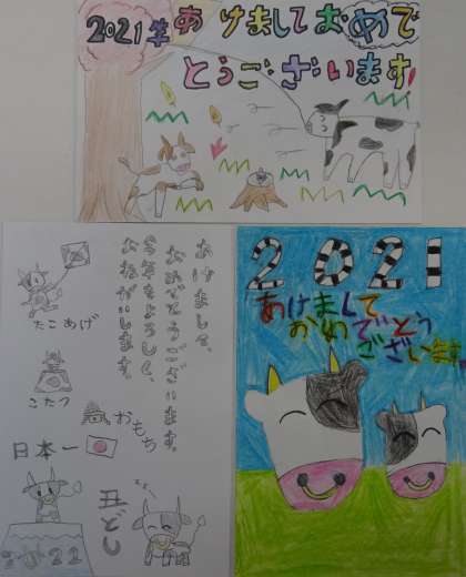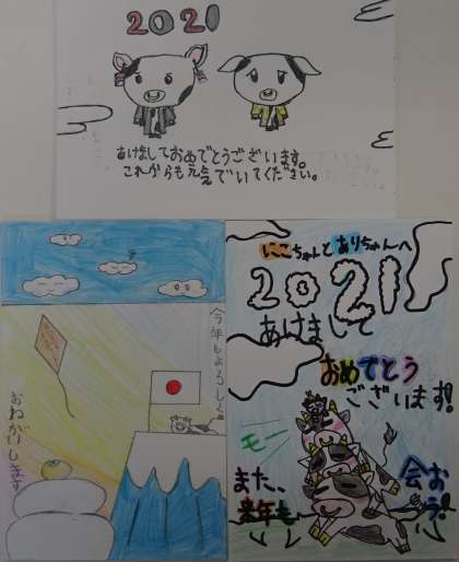 子どもたちが描いた年賀絵手紙です。