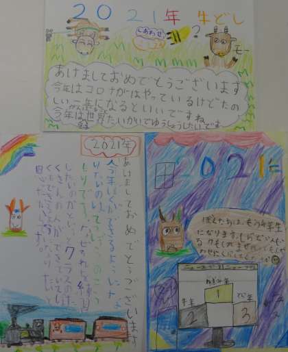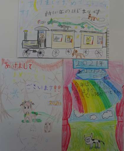 子どもたちが描いた年賀絵手紙です。