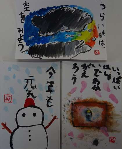 子どもたちが描いた年賀絵手紙です。